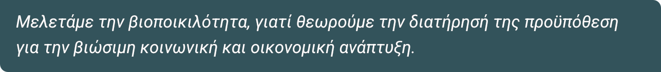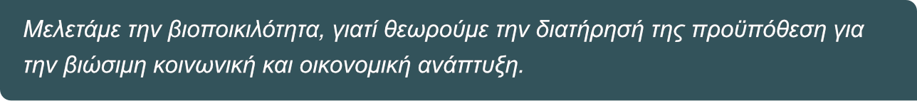 Σχεδιάζουμε και υλοποιούμε προγράμματα μελέτης, καταγραφής, παρακολούθησης και προστασίας της βιοποικιλότητας.