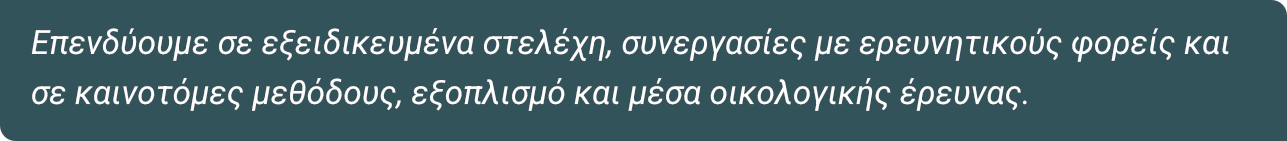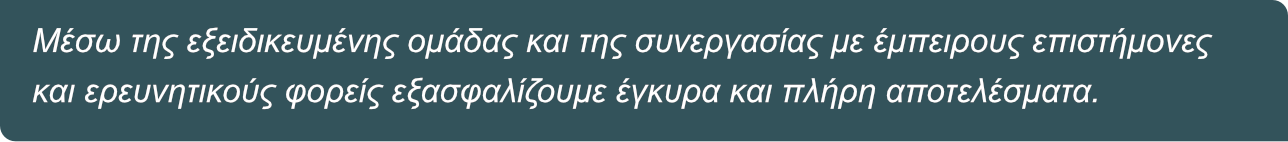 Συνεργαζόμαστε με πανεπιστήμια, ινστιτούτα, ειδικούς επιστήμονες και εξειδικευμένες εταιρείες από την Ελλάδα και το εξωτερικό.