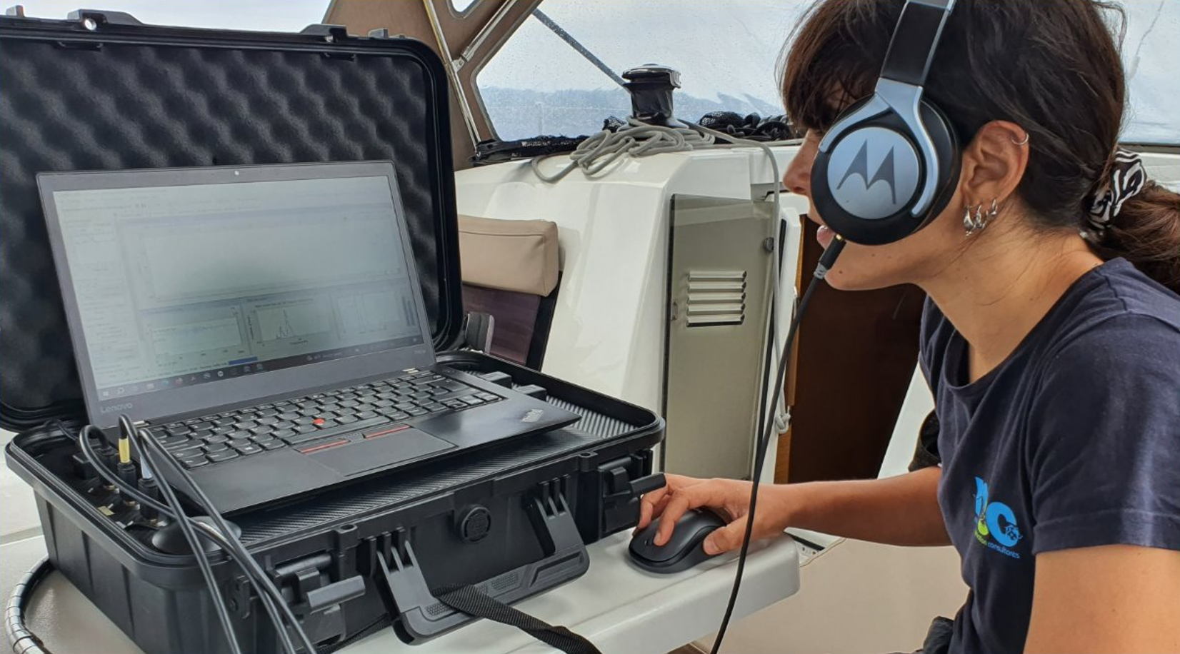The NCC conducts passive acoustic monitoring surveys using all available means to study underwater noise, the goal being to identify the sounds of marine mammal in the recorded files. For data collection it uses a 200-meter-long hydrophone towed on sea missions, places autonomous hydrophones in monitoring areas for continuous long-term recordings, and explores the possibilities of using floating hydrophone arrays. The data collected are filtered and processed to extract the important information. The processing is carried out by specialized personnel using special acoustic analysis programs.